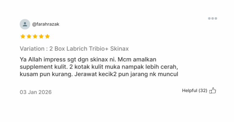 Kulit mula nampak lebih segar & kurang kusam. Tona wajah perlahan-lahan jadi lebih sekata.